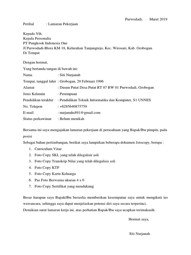 Contoh surat lamaran kerja tulis tangan untuk pabrik kumpulan .